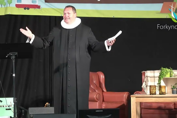 Præst og undervisningskonsulent Sprint Korsholm prædiker ved gudstjenesten søndag på FC Mørkholt 2022. Søndagens tekst handler om den fortabte søn og giver Sprint en naturlig anledning til at tale om familieliv og Gud som far.