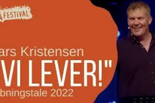 Forkyndelse ved Lars Kristensen. Emnet er "Vi lever!". Optagelsen er fra åbningsmødet fredag aften på Å-festival 2022.